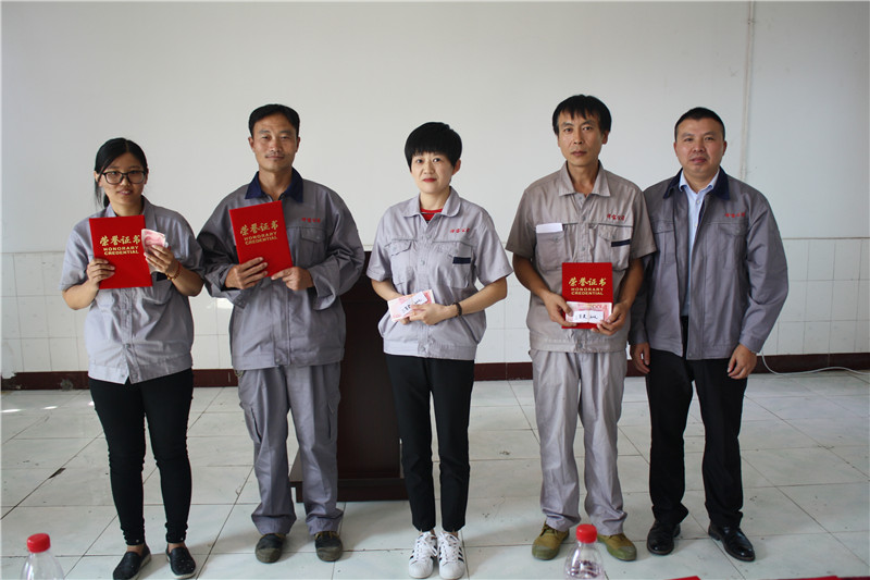 指導(dǎo)老師和董事長為獲獎(jiǎng)員工頒獎(jiǎng)并合影留念