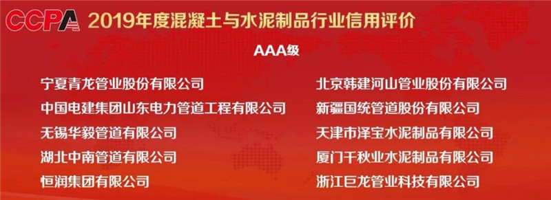 澤寶水泥榮獲CCPA混凝土管“十強(qiáng)企業(yè)”